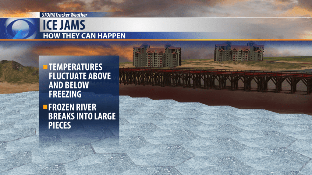 Ice jamming has happened in the area due to fluctuating temperatures from above to below freezing.