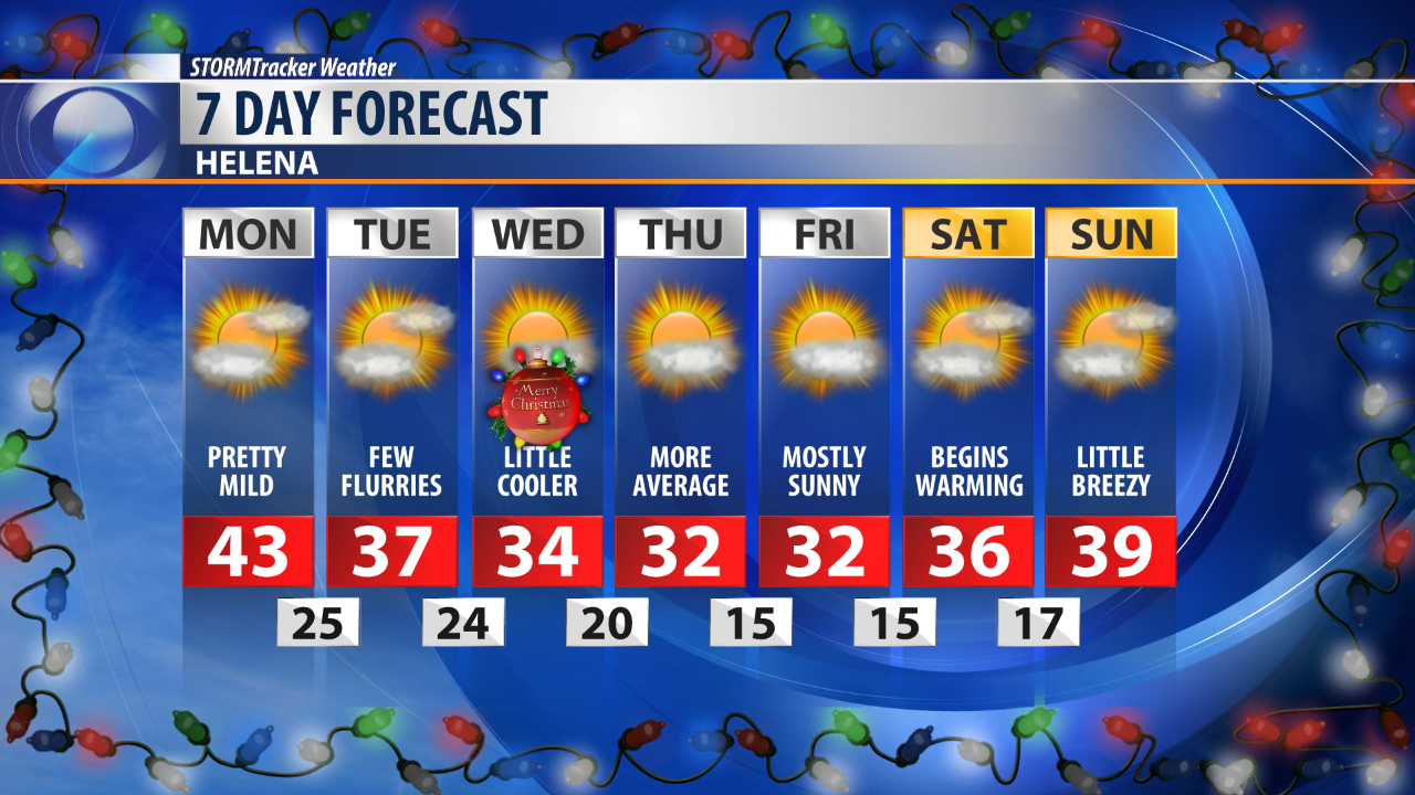 Temperatures will continue to trend more average through Christmas before warming once again as we near the weekend.