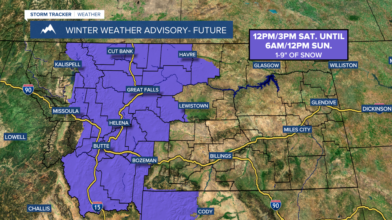 A WINTER WEATHER ADVISORY is in effect for portions of western and central Montana from 12pm/3pm Saturday until 6am/12pm Sunday.