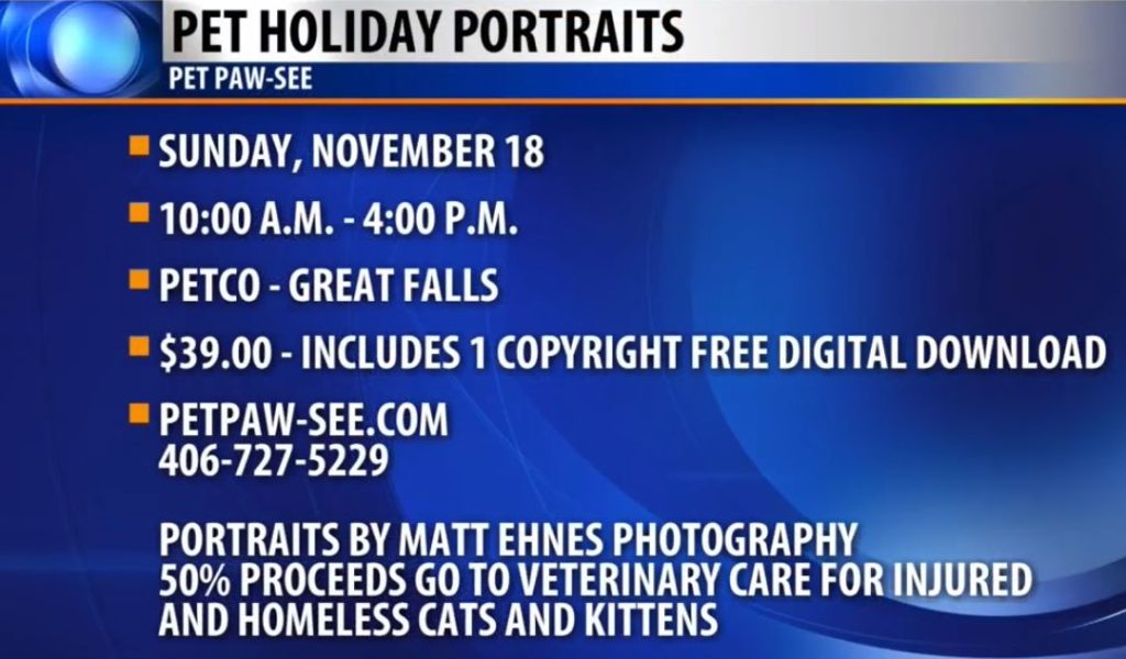 Pam Lemelin visited KRTV to talk about pet holiday portraits, with some proceeds going to help provide care for injured and homeless cats.