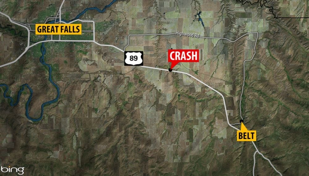 (1st Report, 1:22 p.m.) The Montana Highway Patrol reports that at least one person has been injured in a crash east of Great Falls.