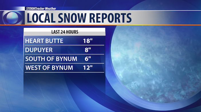 Since the slow-moving spring storm moved in Tuesday, Heart Butte and some surrounding areas have received over a foot and a half of snow.