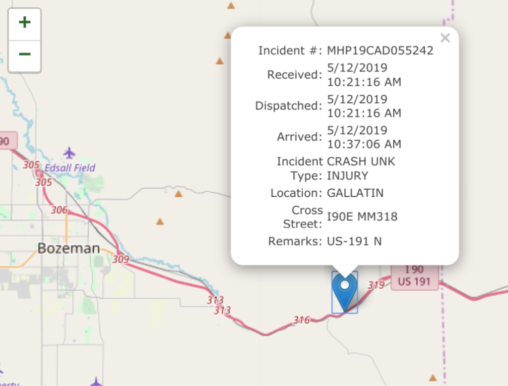 Montana Highway Patrol (MHP) units responded to reports of a vehicular accident between Bozeman and Livingston — with injuries of unknown severity — at 10:37 a.m. Sunday morning.