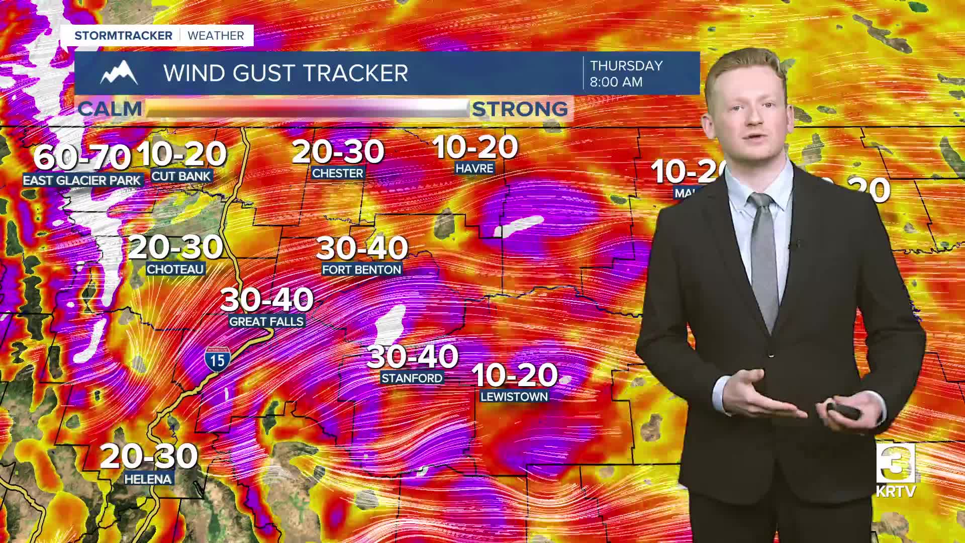 WEATHER FORECAST: HIGH WIND WARNING through 11am Friday. Partly cloudy and very windy. Peak wind gusts will reach 50-70 mph, and up to 100 mph along the Rocky Mountain Front. Travel is going to be very difficult for high-profile vehicles and those towing trailers. Daytime highs in the 40s and lower 50s.