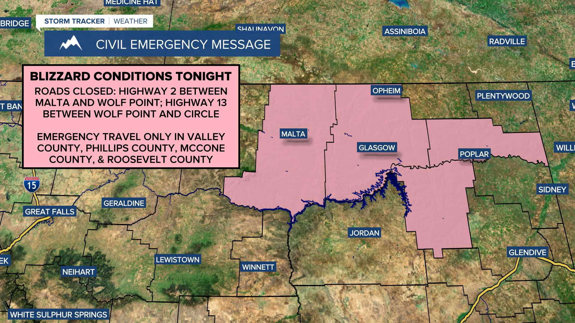 Emergency travel only in northeastern Montana due to blizzard conditions