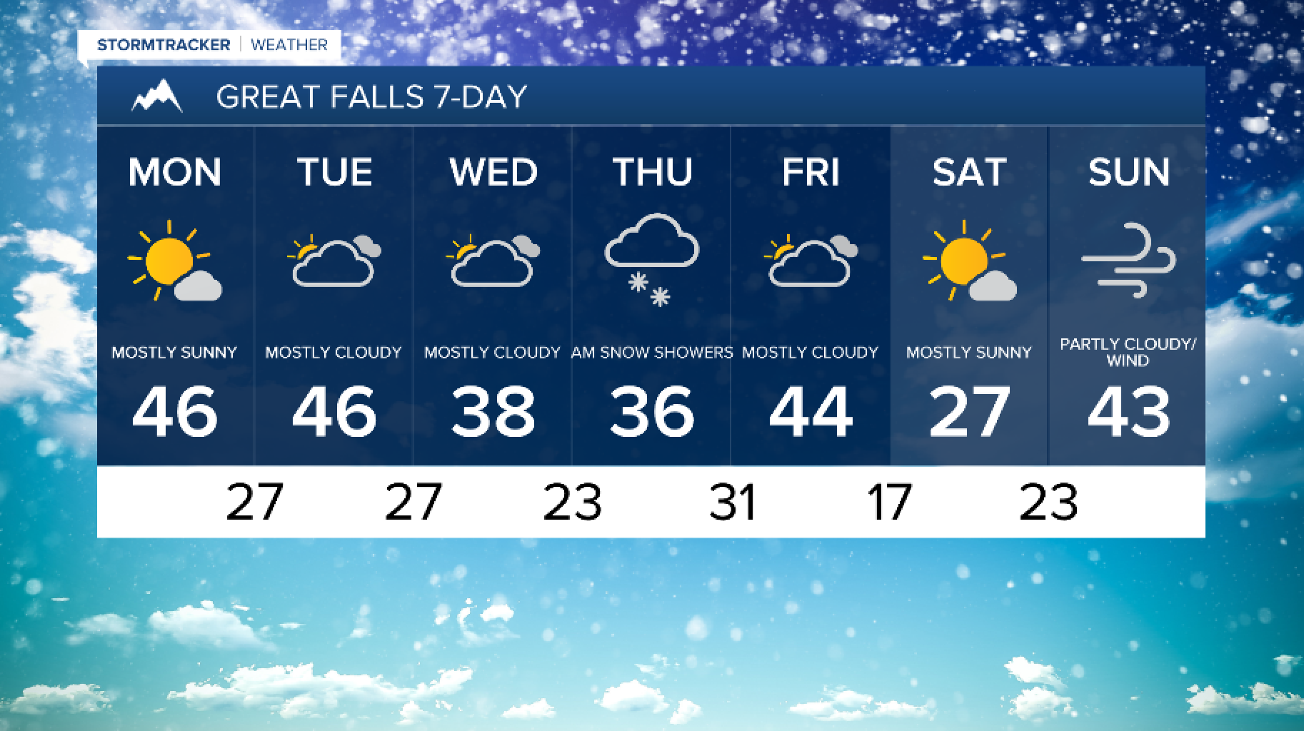 Mostly cloudy and mild with isolated freezing rain/snow showers on Tuesday