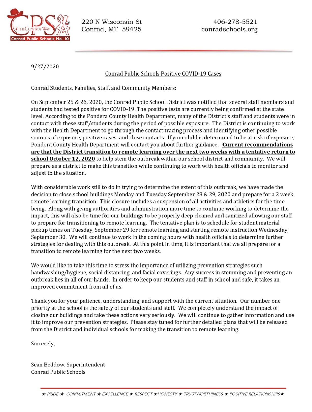 Conrad schools move to 2-week remote learning due to new COVID-19 cases