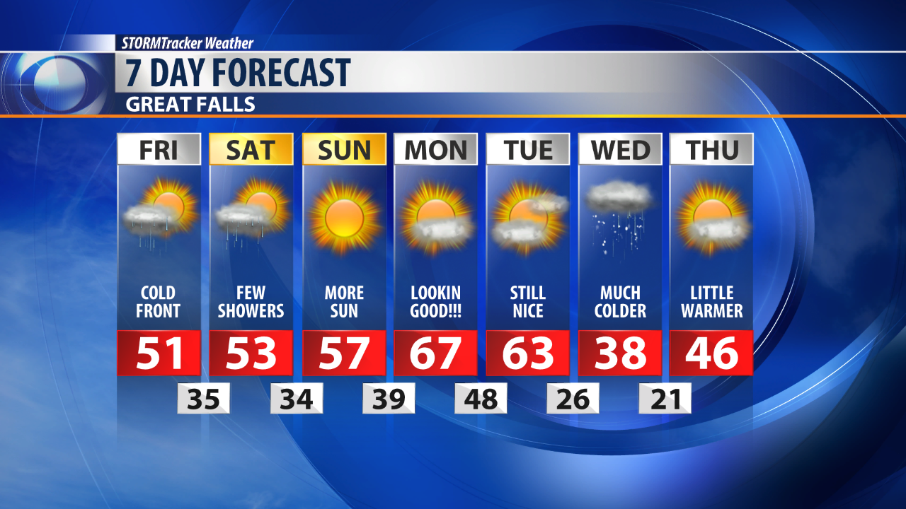 Cloudy skies and spotty showers will be the main impact for Great Falls and Helena.