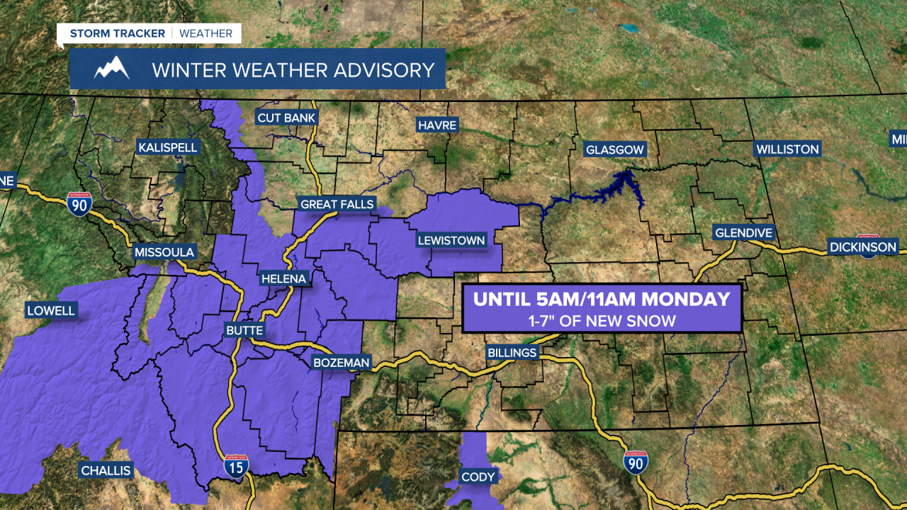 Winter weather alerts are in effect for a lot of Montana through Tuesday or Wednesday depending on your exact location. Snow totals will range greatly throughout the state, with the lowest snow amounts along the Hi-Line and the highest snow amounts in central and southern Montana. A large swath of 6-18" of snow is expected in the lower elevations in central and southern Montana.