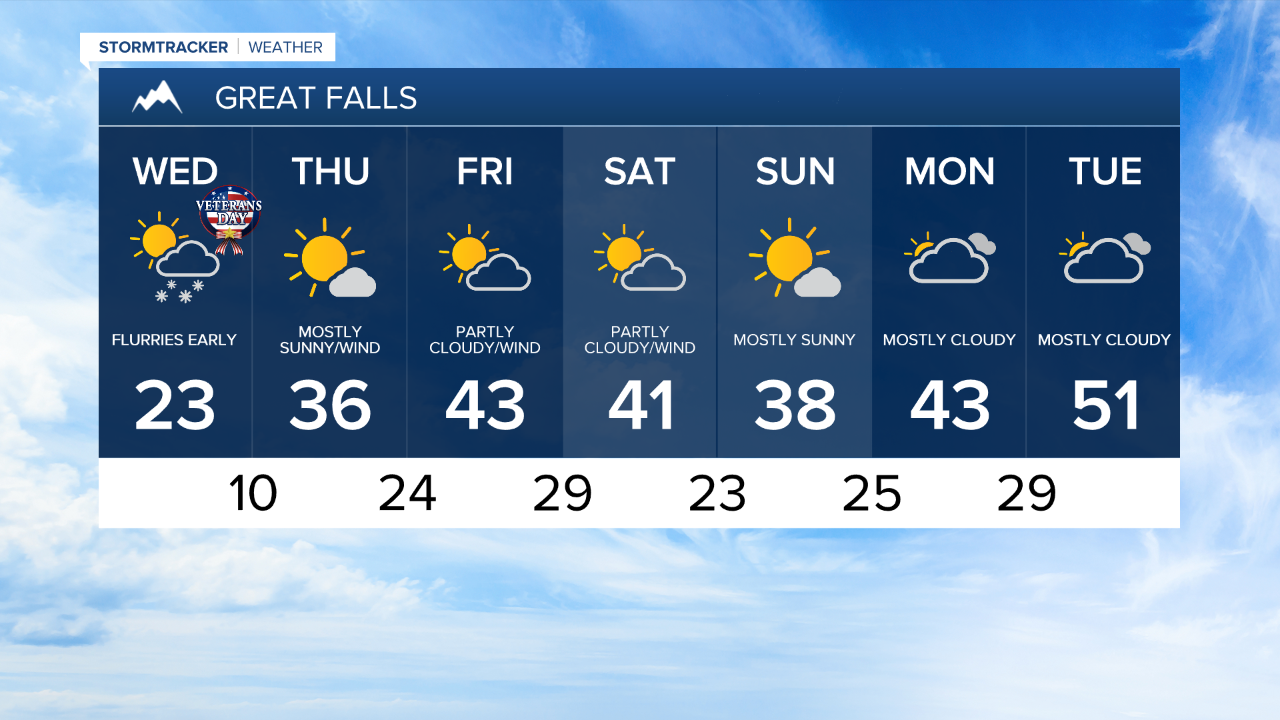 A few lingering flurries are likely for the first portion of the day eventually becoming more concentrated to the high terrain as the day plays out.