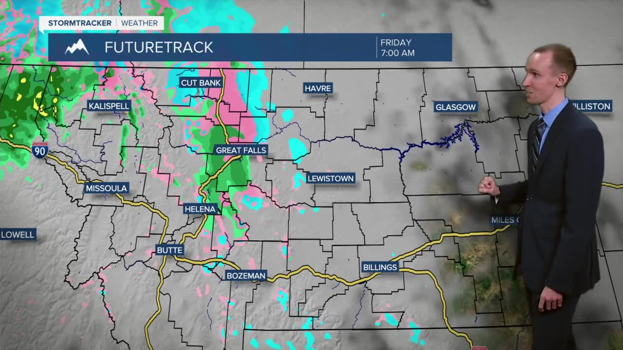 A warm front is then going to approach and pass through our area late tomorrow night and during the day on Friday. There are going to be some showers around with this front, especially in north-central Montana. The showers will initially be in the form of snow ahead of the warm front, but this snow will mix in with and change over to rain once the front passes through our area, at least in the lower elevations. In the mountains, primarily snow showers are expected. Once again, light snow accumulations are possible in locations that see some of this snow. This warm front is also going to allow our temperatures to warm back up into the upper 40s and low to mid 50s. Breezy conditions (sustained wind speeds between 10 and 25 mph) are also expected behind this front on Friday.