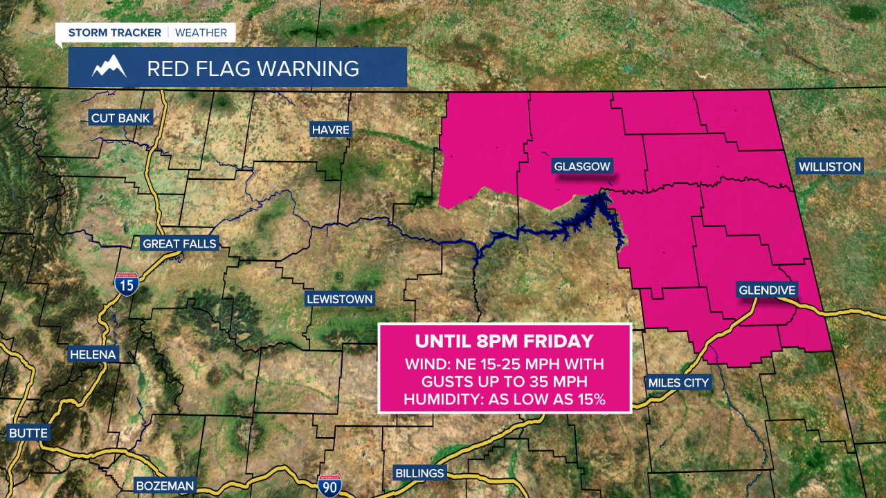 A RED FLAG WARNING is in effect for portions of northeastern Montana until 8pm Friday.