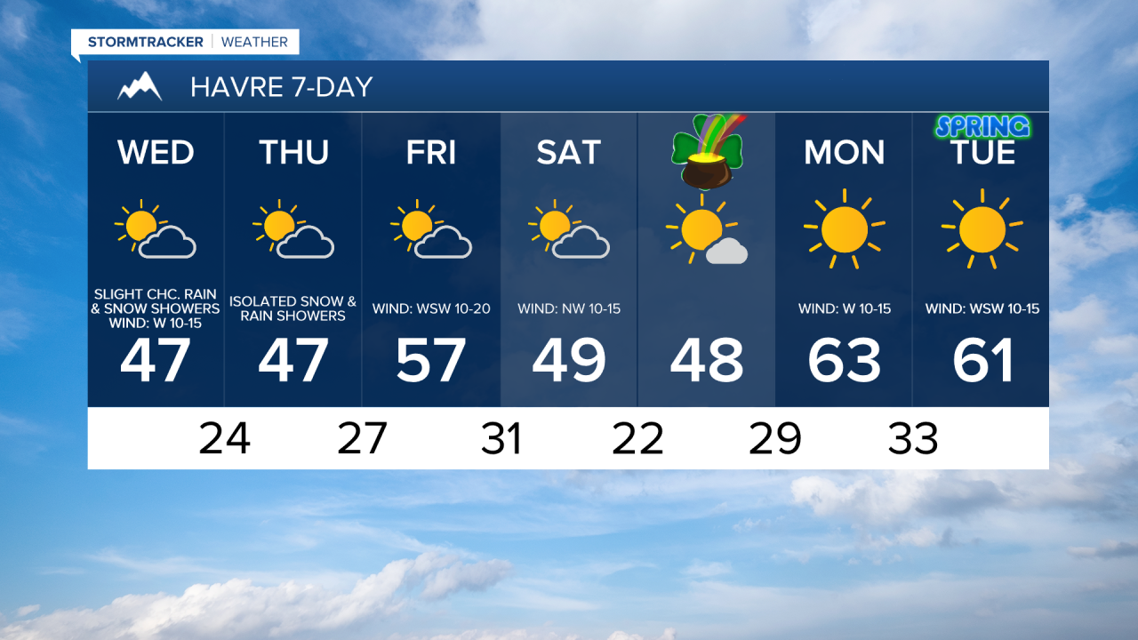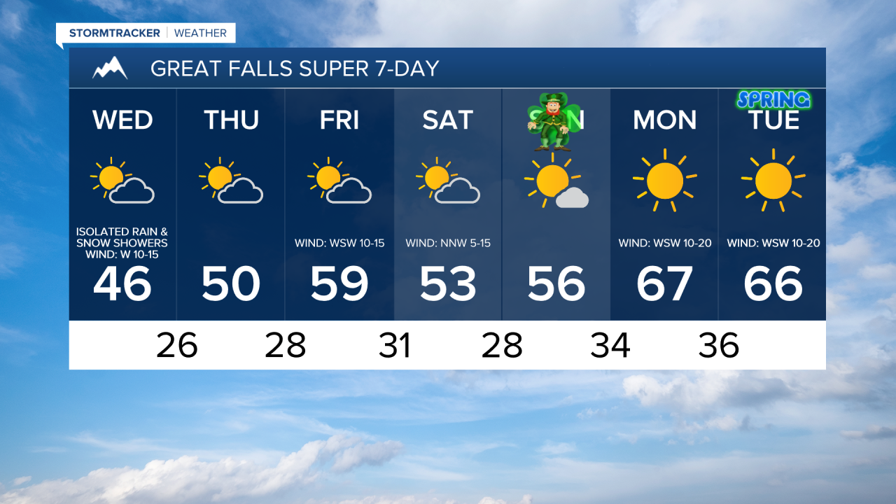 Partly to mostly sunny skies and mostly dry conditions are then expected on Friday, Saturday, and Sunday as an upper-level ridge is generally going to be in control of our weather. It is also going to be mild on Friday as highs are going to be in the 50s and low 60s. We are then going to have pleasant temperatures this weekend as highs are going to be in the 50s and mid to upper 40s, with the coolest temperatures in eastern portions of north-central Montana. There is also going to be a bit of a breeze around on Friday and Saturday as sustained wind speeds are going to be between 10 and 20 mph.
