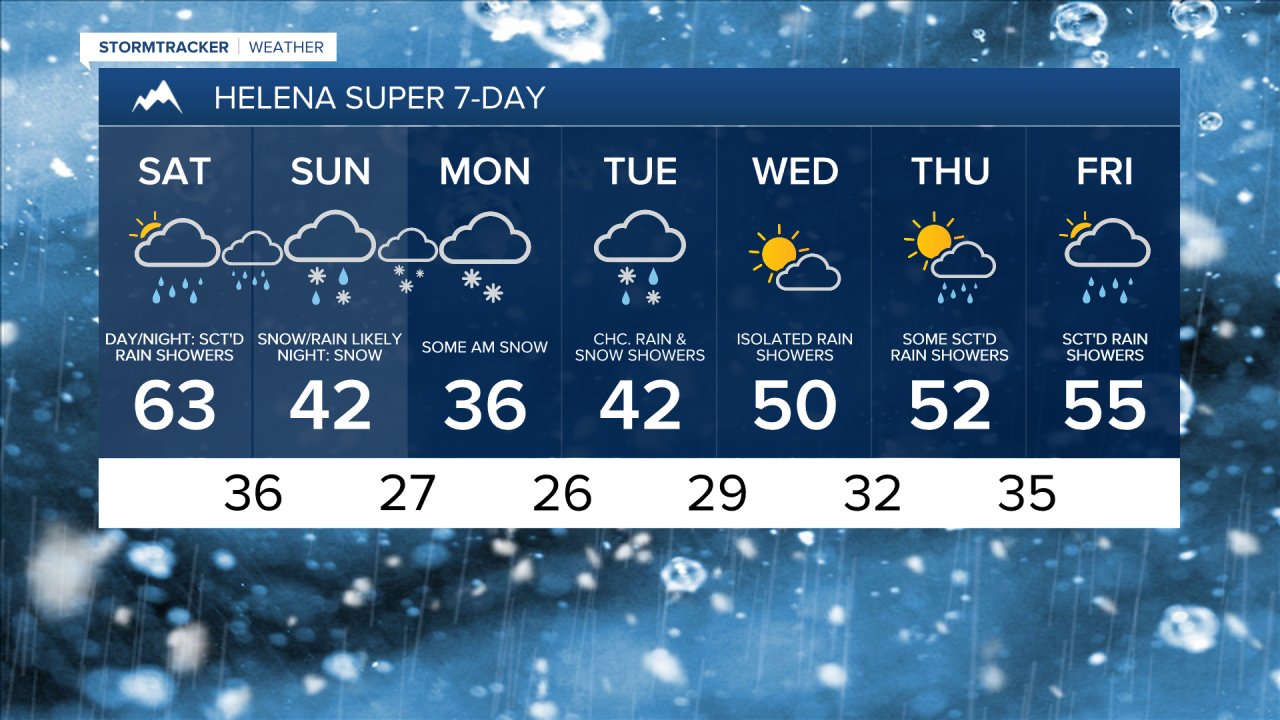 On Tuesday and Wednesday, we are going to have partly cloudy skies with a few scattered rain and snow showers around Helena and some isolated rain and snow showers around in north-central Montana. We are then going to have a chance to see some more scattered rain and mountain snow showers on Thursday and Friday as we remain in an unsettled weather pattern.