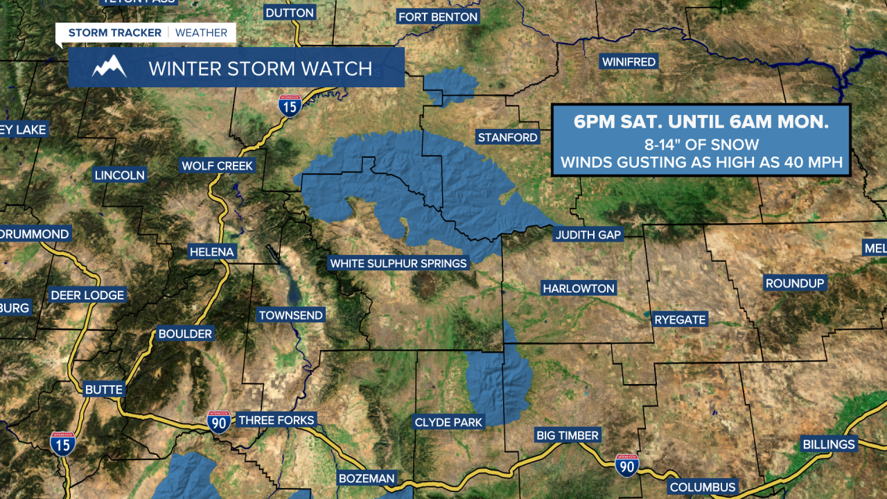 A WINTER STORM WATCH is in effect for the Highwoods and Little Belts from 6pm Saturday until 6am Monday.