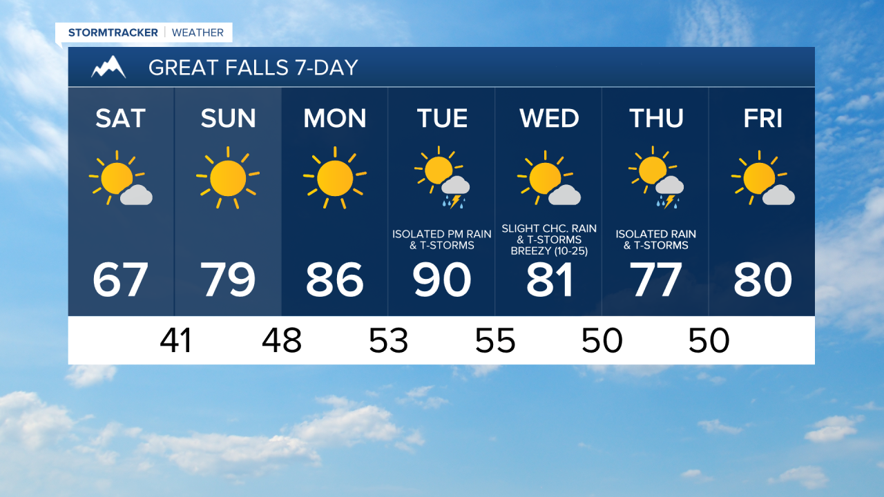 For tomorrow, we are going to have partly cloudy to mostly sunny skies and cool, but comfortable temperatures as highs are going to be in the mid to upper 60s and low 70s. It is also going to be breezy tomorrow in eastern Montana as sustained wind speeds are going to be between 10 and 25 mph, and it is going to be a bit breezy tomorrow in eastern portions of north-central Montana as sustained wind speeds are going to be between 10 and 20 mph. For everyone else, there is just going to be a light breeze around tomorrow. Most locations are also going to be dry tomorrow, but some isolated showers and thunderstorms are expected along the eastern half of the Hi-Line (east of Havre).