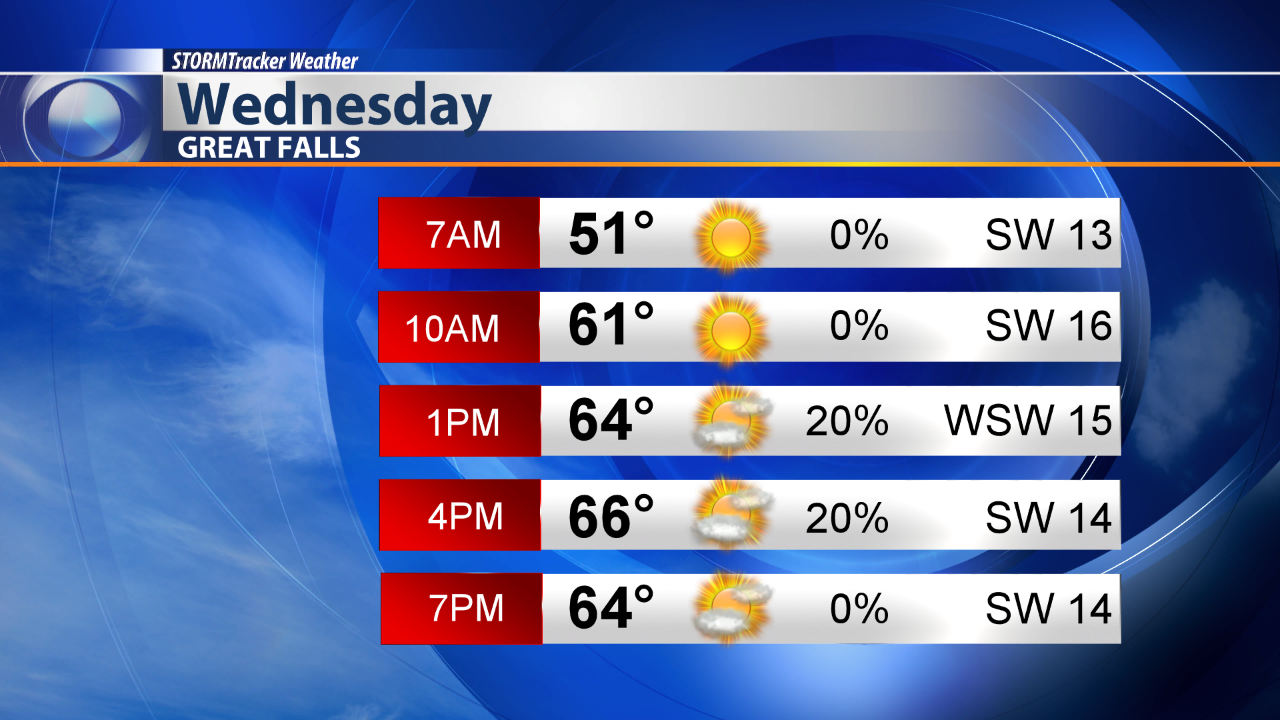 Many of us are included in a low chance area for isolated severe thunderstorms. The best time to see severe thunderstorms will be from the late afternoon through the evening hours. The main threats will be gusty winds up to 50 mph along with quarter size hail. Even though Helena, Great Falls and Havre aren't included in this low risk area on the map, I believe we could see a stray storm become severe.