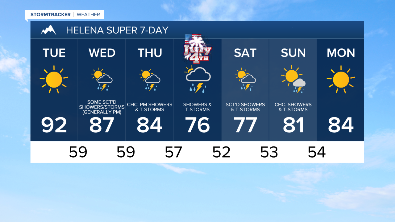The upper-level ridge will begin to shift eastward as we head into Wednesday and Thursday, giving us southwesterly flow aloft, which will allow some monsoonal moisture to begin to work its way into the state. On Wednesday, we are going to have increasing clouds with some scattered showers and thunderstorms around, mainly during the PM hours. On Thursday, we are going to have increasing clouds with some scattered PM showers/storms around the Helena area and some isolated PM showers/storms around in north-central Montana. A couple severe thunderstorms will also be possible on these two days, with damaging winds being the main hazard, so please keep an eye to the sky if you are going to be outdoors at all!
