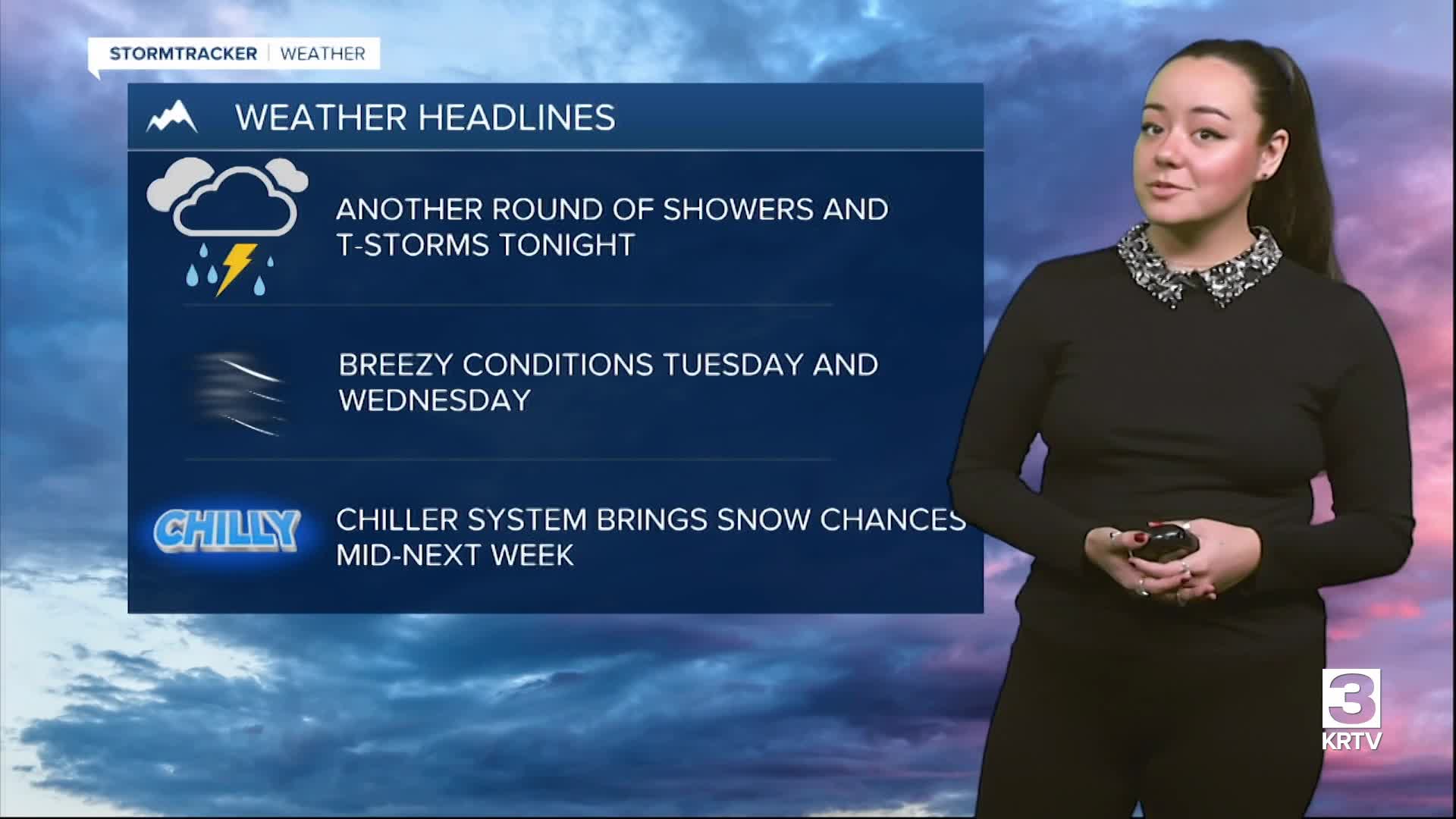 WEATHER DISCUSSION: Sunday saw another mainly dry morning and afternoon until another round of showers and thunderstorms made their way into the region, sticking around through much of tonight. Otherwise, expect cloudy to mostly cloudy skies with low temperatures in the 30s and 40s. Winds will be slightly breezy, with gusts up to 20-30 mph. Gusty winds and lightning across Southwest and Central Montana will be the primary concern tonight with thunderstorms. Some light snow near and above pass level is possible, but impacts look minimal at this time.