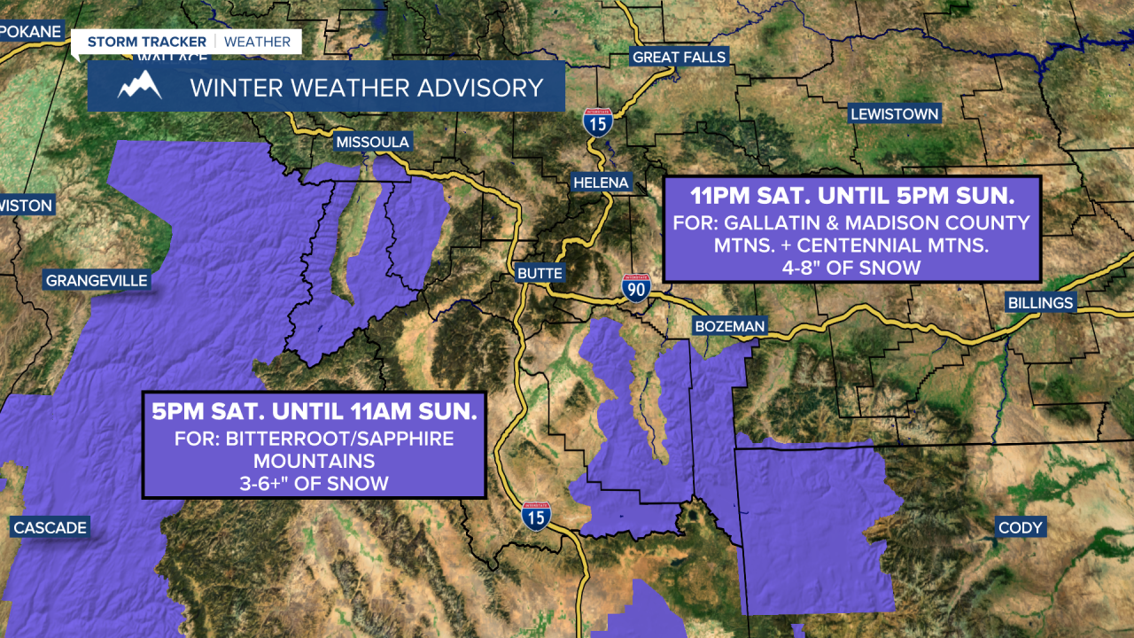 A WINTER WEATHER ADVISORY is in effect for the Bitterroot and Sapphire mountains from 5pm Saturday until 11am Sunday.