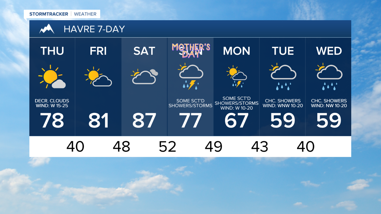 It will be another warm weekend as highs are going to be in the 80s and low 90s on Saturday and the 70s and mid to upper 60s on Sunday. On Saturday, we are going to have partly to mostly cloudy skies with some isolated showers and thunderstorms around during the evening, especially around Helena. There are then going to be scattered showers and thunderstorms around on Sunday, generally during the PM hours. We are also going to have mostly cloudy skies on Sunday. There is also going to be a bit of a breeze around this weekend as sustained wind speeds are going to be between 10 and 20 mph.