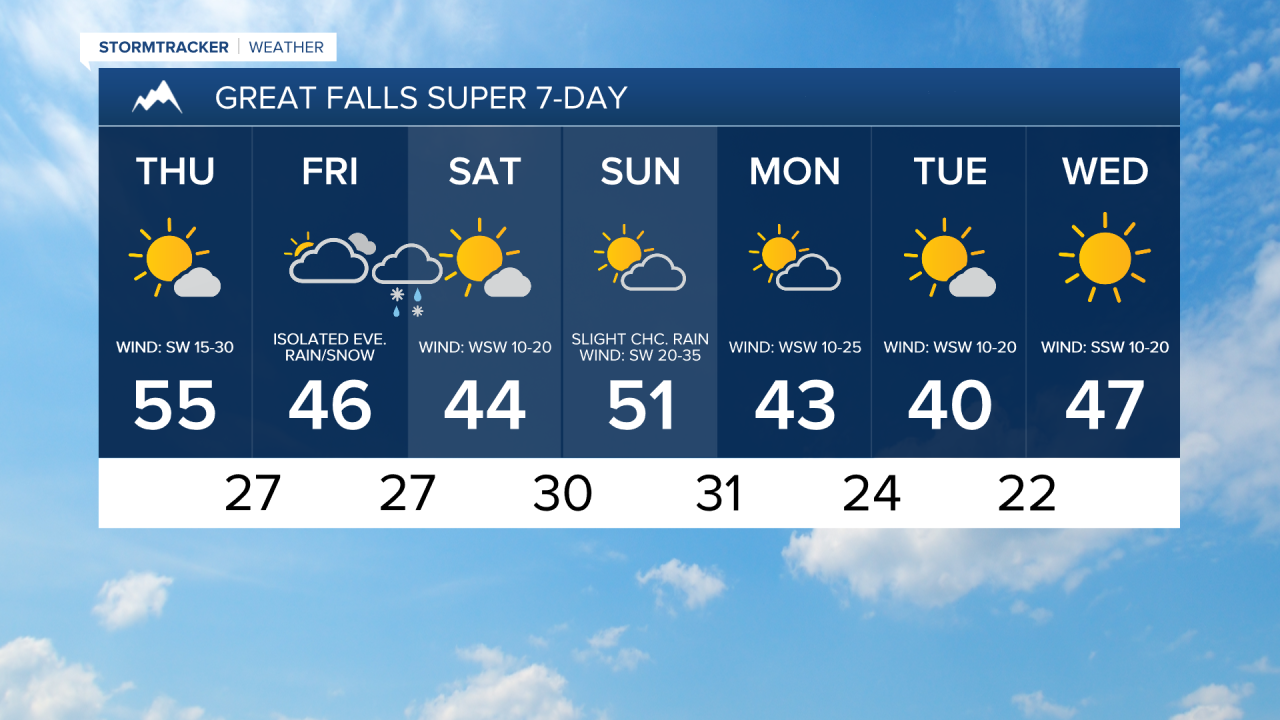 There are then going to be some scattered snow showers around the Helena area on Monday and we are going to have mostly dry conditions in north-central Montana on Monday as another disturbance passes through our area. We are also going to have partly to mostly cloudy skies and cooler temperatures on Monday as highs are going to be in the upper 30s and low to mid 40s in most locations. There is also going to be a good breeze around on Monday as sustained wind speeds are going to be between 10 and 25 mph.