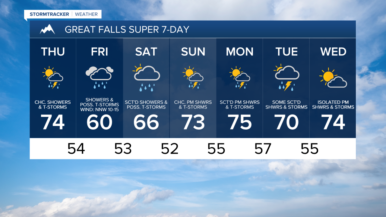 For tomorrow, we are going to have partly to mostly cloudy skies with some scattered showers and thunderstorms around, generally during the afternoon and evening. We are also going to have a wide range of temperatures tomorrow as highs are going to range from the upper 60s to the mid 80s, with the warmest temperatures in northeastern Montana. There is also going to be a little breeze in spots tomorrow as sustained wind speeds are going to be between 10 and 15 mph.