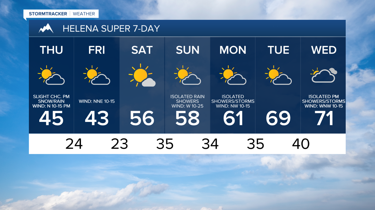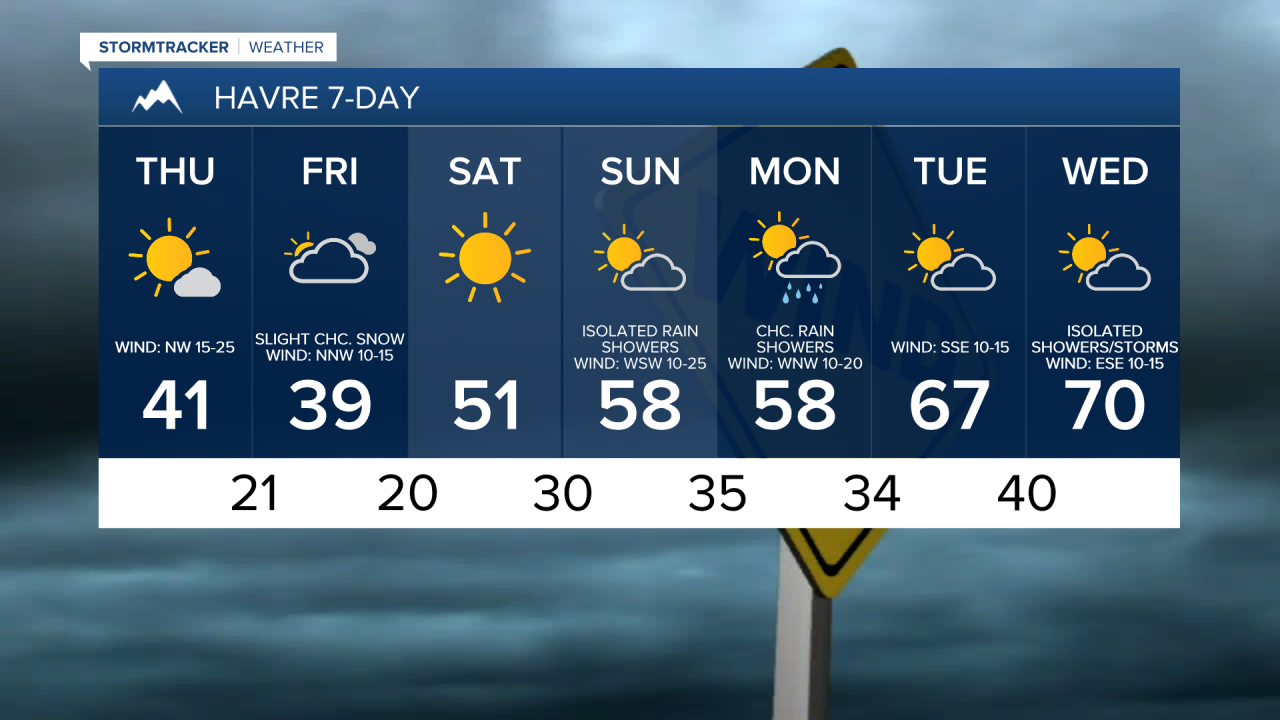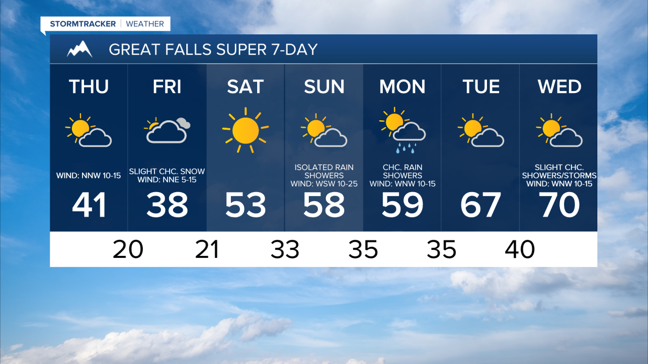 For tomorrow, we are going to have partly to mostly sunny skies with a few snow/rain showers along the Divide, around the Helena area, and in northeastern Montana. Mostly dry conditions are expected elsewhere. It is also going to be cold again tomorrow as highs are only going to be in the upper 30s and low to mid 40s in most locations. We are also going to have gusty winds around again tomorrow as sustained wind speeds are going to be between 10 and 30 mph, with the wind getting stronger the further east of I-15 you go.