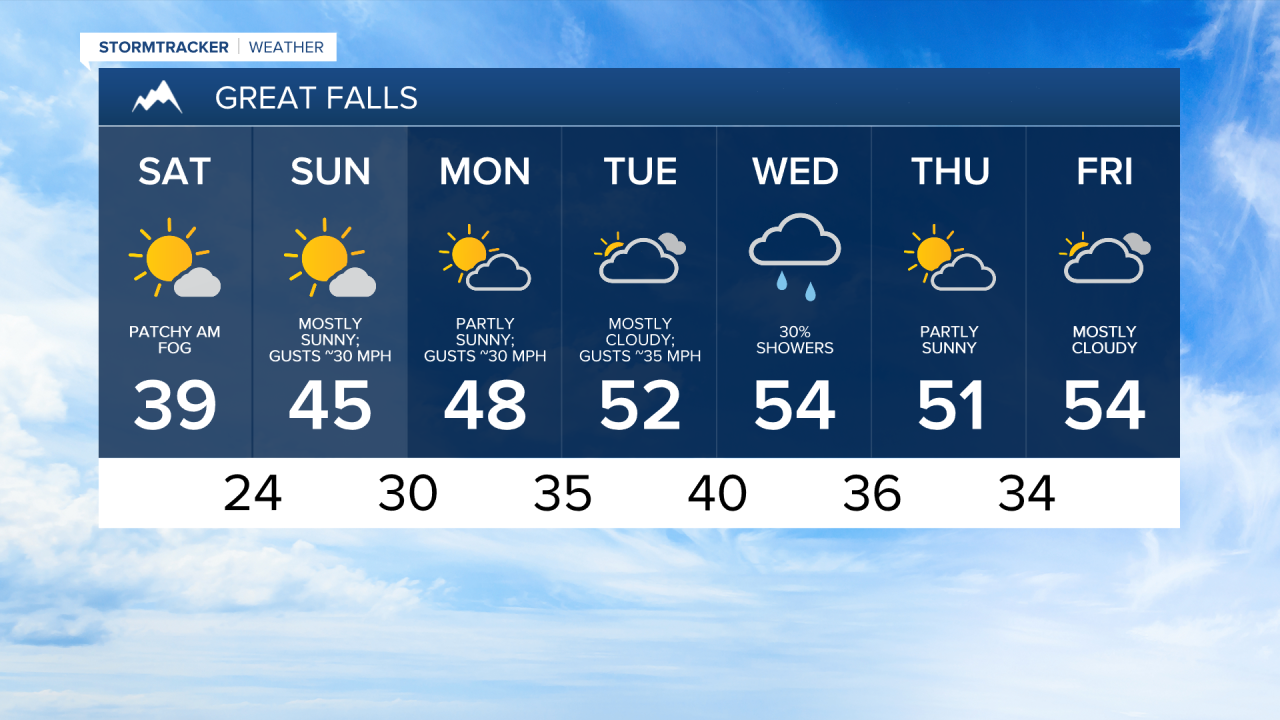 Winds pick up for Great Falls starting on Sunday with gusts up to 30 mph.