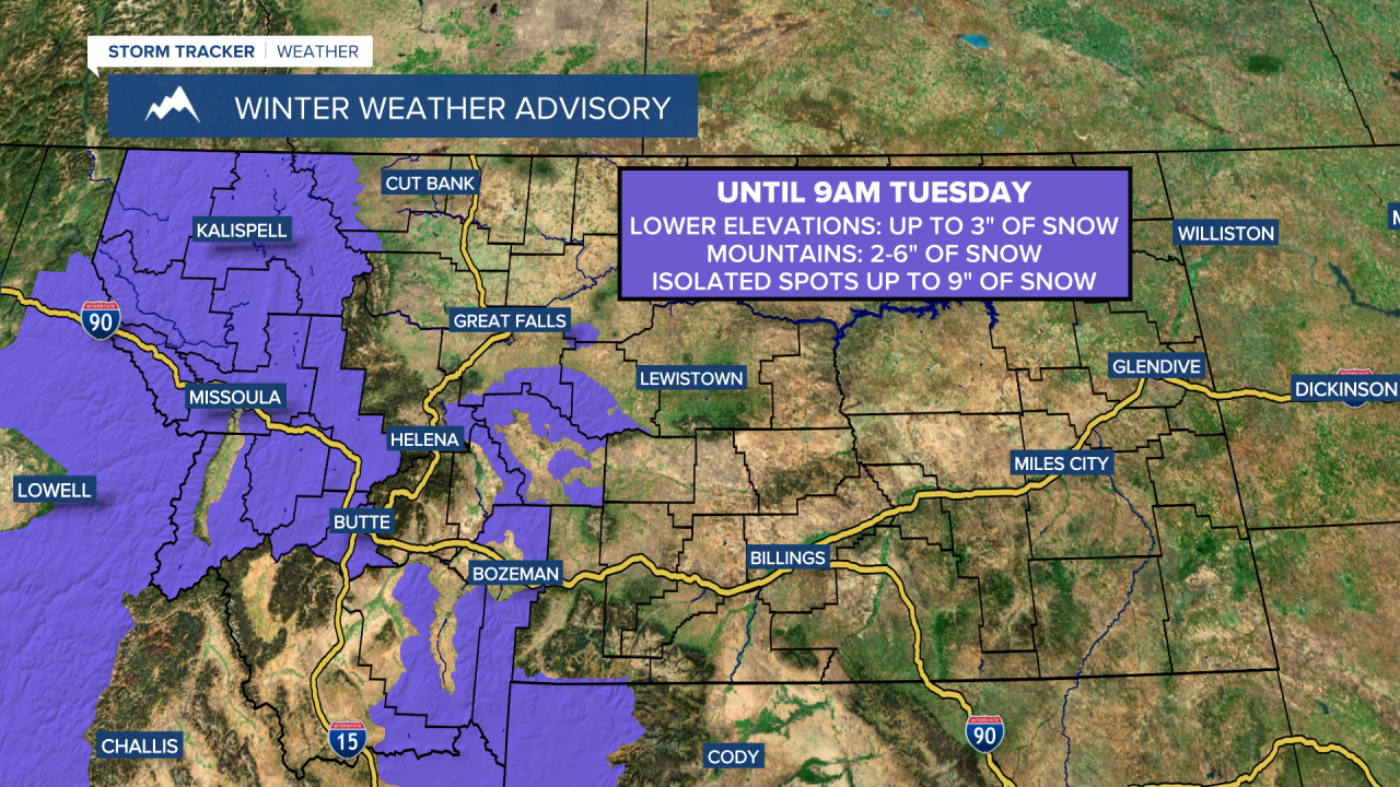 A WINTER WEATHER ADVISORY is in effect for western Montana and some of the mountains in central and southwestern Montana until 9am Tuesday.