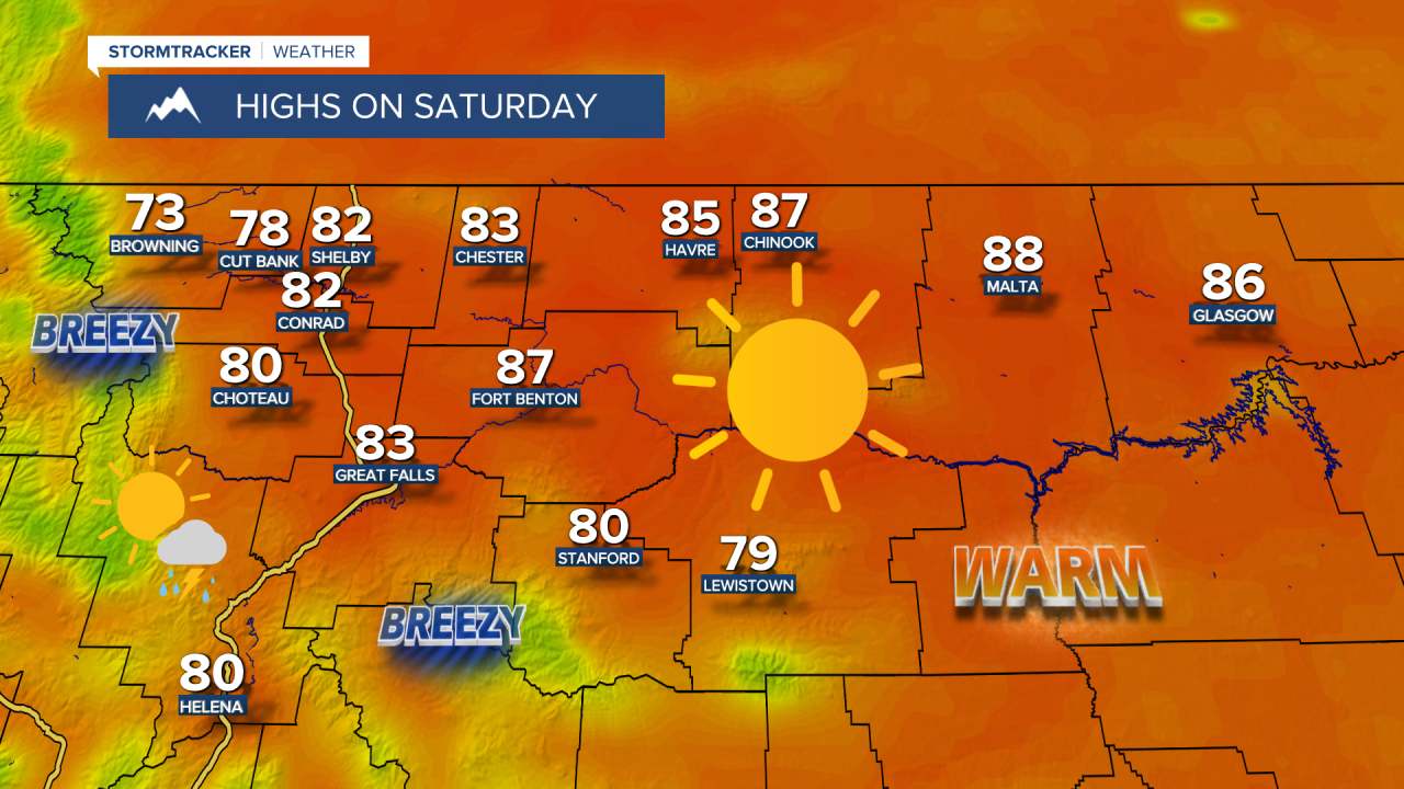 For tomorrow, we are going to have mostly cloudy skies with scattered rain showers and isolated thunderstorms around, especially during the afternoon and evening, as a disturbance begins to pass through our area. Gusty winds are also expected tomorrow along the Rocky Mountain Front as sustained wind speeds are going to be between 15 and 30 mph, and widespread breezy conditions are expected tomorrow east of the Rocky Mountain Front as sustained wind speeds are going to be between 10 and 25 mph, and wind gusts up to 40 mph are possible. We are also going to have seasonable temperatures tomorrow as highs are going to be in the 50s and 60s in most spots.