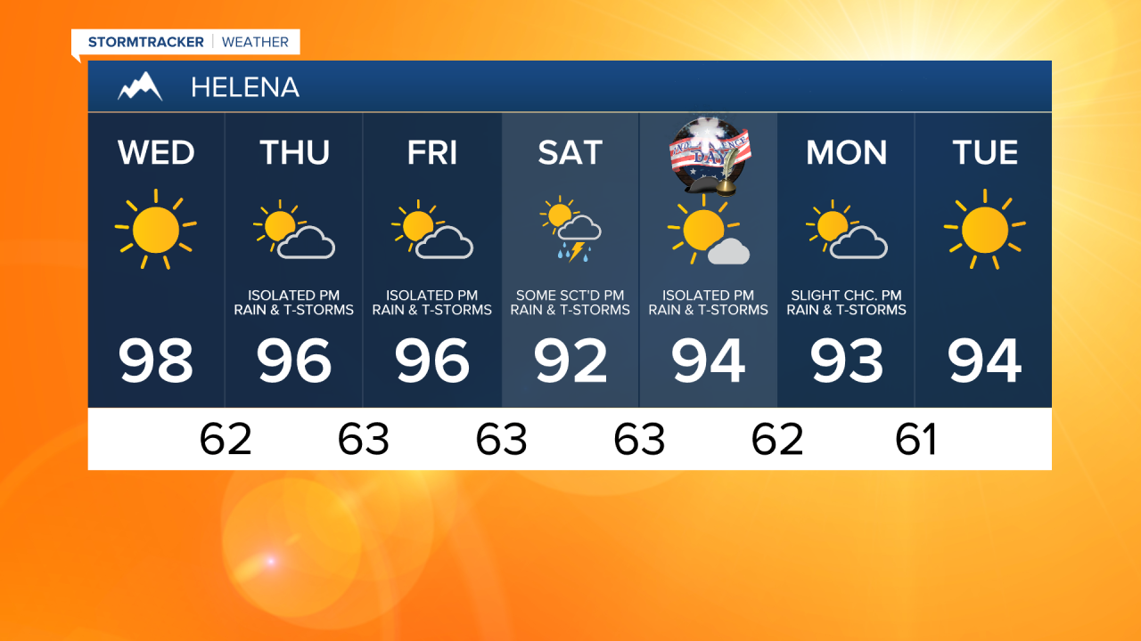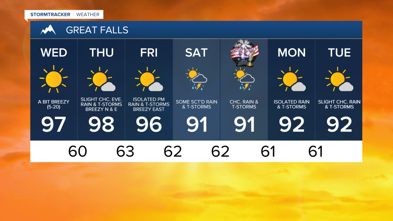 The heat is going to continue to be the big story for the rest of the work week. A Heat Advisory is in effect for central Montana until 9pm on Friday as high temperatures are going to be in the mid to upper 90s and lower 100s for the rest of the work week. There is also an Excessive Heat Watch in effect for eastern Montana from noon on Thursday until 6pm on Saturday as high temperatures are going to be in the lower 100s. Thankfully, even though it is going to be hot during the day, at least we are going to get some relief from the heat at night as lows are going to be in the upper 50s and low to mid 60s for the rest of the work week.