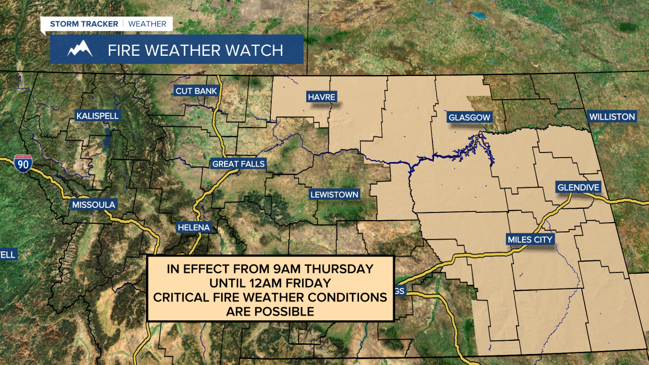 As we head into tomorrow, there is going to be a little bit of a breeze around, especially along the Hi-Line and in eastern Montana, as sustained wind speeds are going to be between 5 and 20 mph. It is then going to be breezy on Thursday in eastern Montana and along the Hi-Line as sustained wind speeds are going to be between 10 and 25 mph. There is also a Fire Weather Watch in effect from 9am Thursday until midnight on Friday for most of eastern Montana as critical fire weather conditions are possible. Breezy conditions are then expected again on Friday in eastern Montana as sustained wind speeds are going to be between 10 and 20 mph.