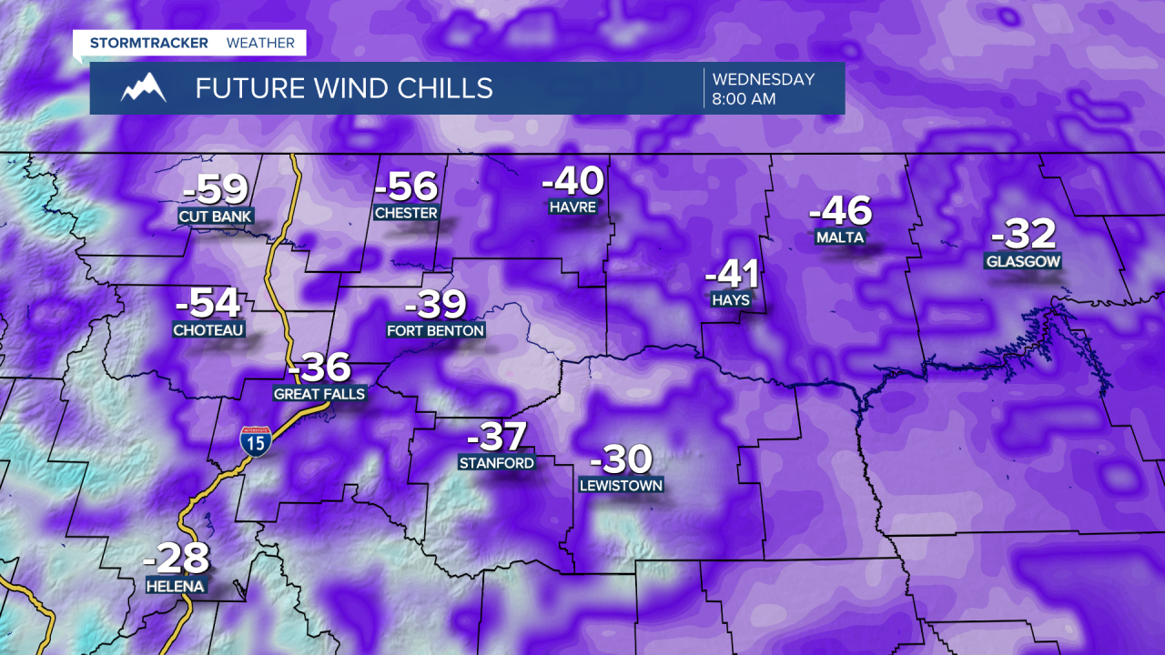 The coldest temperatures early next week are going to be along the Hi-Line. This is where a few spots may drop down into the -30s at night. Dangerously cold wind chills are also expected early next week, with wind chills in the -30s, -40s, and -50s along the Hi-Line, and the -10s, -20s, and -30s in locations south of the Hi-Line. Make sure you limit your time outdoors early next week, and if you do have to be outside, make sure you wear multiple layers and cover all exposed skin.