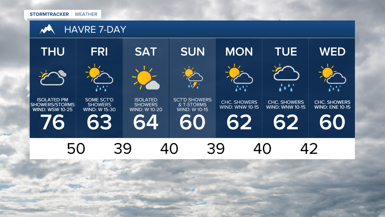 There are going to be a few isolated showers and thunderstorms around tonight, generally along the Hi-Line, as a disturbance clips our area. We are also going to have mostly cloudy skies and mild temperatures tonight as lows are going to be in the mid to upper 40s and low to mid 50s. The wind is also going to increase tonight along the Rocky Mountain Front (gusts up to 40 mph possible by sunrise), with just a little bit of a breeze tonight in the plains.