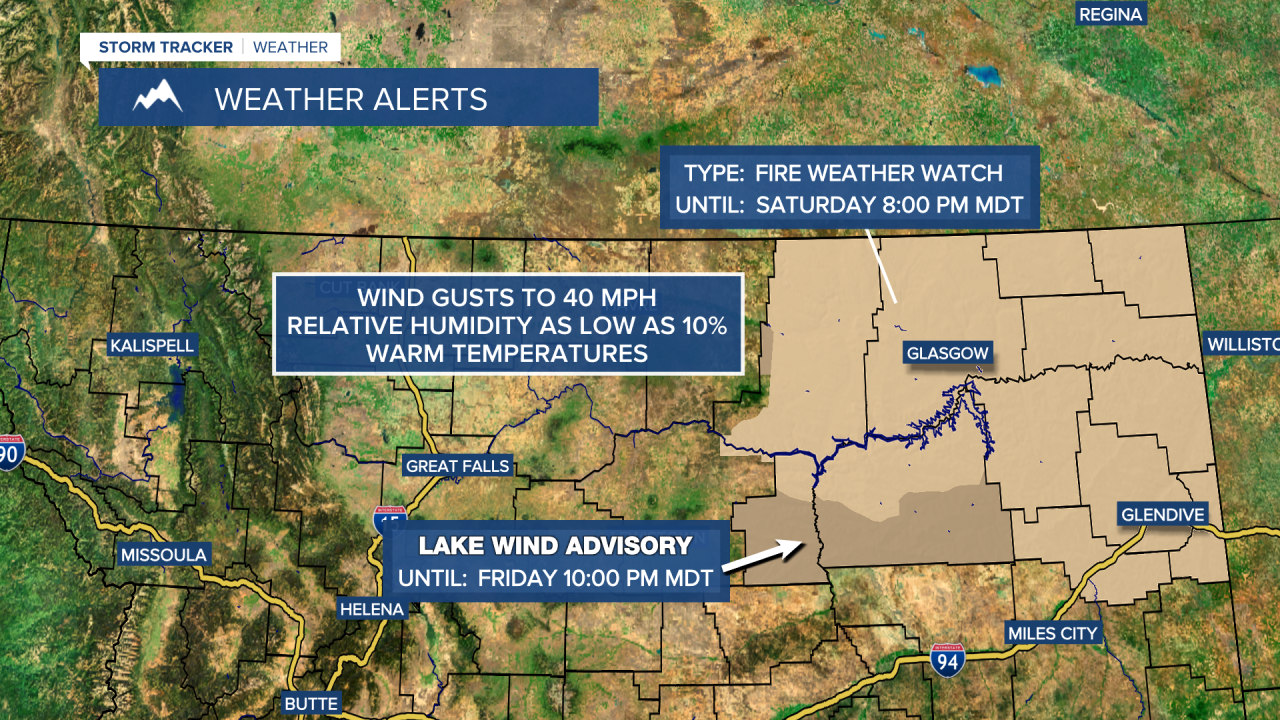 Tomorrow, North-Eastern Montana is under a Fire Weather Watch as well as a Lake Wind Advisory for the Fort Peck area.