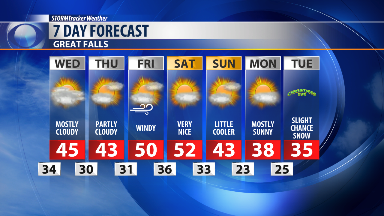 Overnight lows will range from as mild as the 30s in spots like Cut Bank, Great Falls, and Lewistown, to as cool as the teens near Helena.