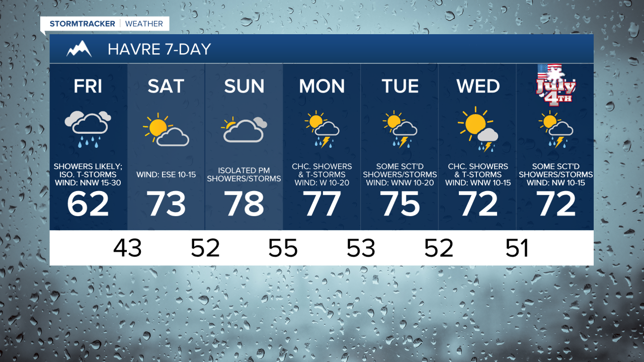 There are then going to be some scattered showers and thunderstorms around on Monday, Tuesday, Wednesday, and Thursday, especially during the PM hours and especially along the Hi-Line, as we are going to be in an unsettled weather pattern with multiple disturbances passing through our area. We are also going to have partly to mostly sunny skies on these four days. It is also going to be breezy on Monday as sustained wind speeds are going to be between 10 and 25 mph. There is then going to be a little breeze around on Tuesday, Wednesday, and Thursday as sustained wind speeds are going to be between 5 and 20 mph. We are also going to have pleasant temperatures next week as highs are going to be in the upper 60s, 70s, and low 80s in most locations.