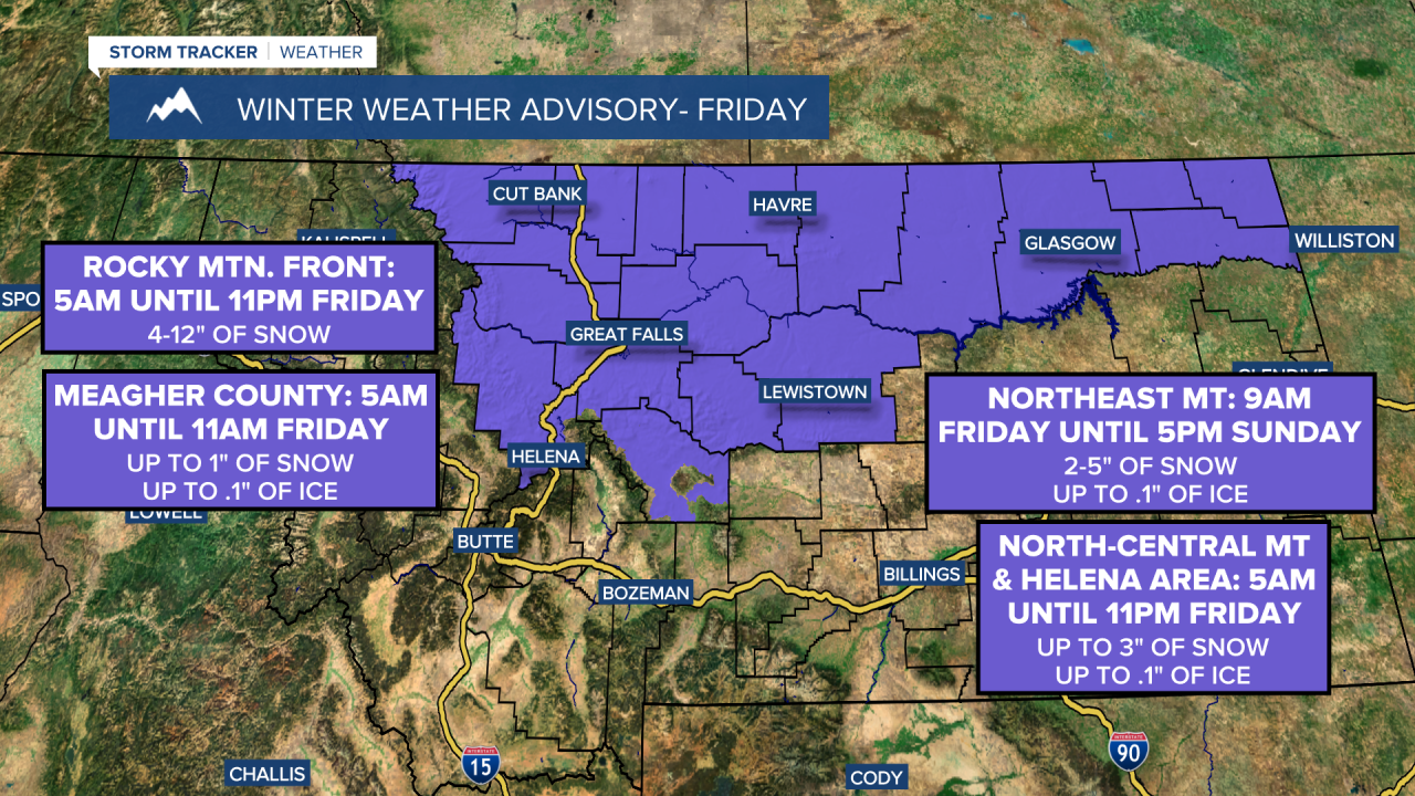 A WINTER WEATHER ADVISORY is in effect for all of north-central Montana and the Helena area from 5am until 11pm Friday.